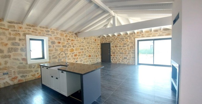 New villas in Bodrum feature elegant interior finishes that include a fireplace in the living room, a spacious fitted kitchen with granite countertops and kitchen appliances, tiled bathrooms with cabinetry and walk-in showers, ceramic floors, sliding doors to terraces, LED lighting, steel entrance doors, double glazed windows.