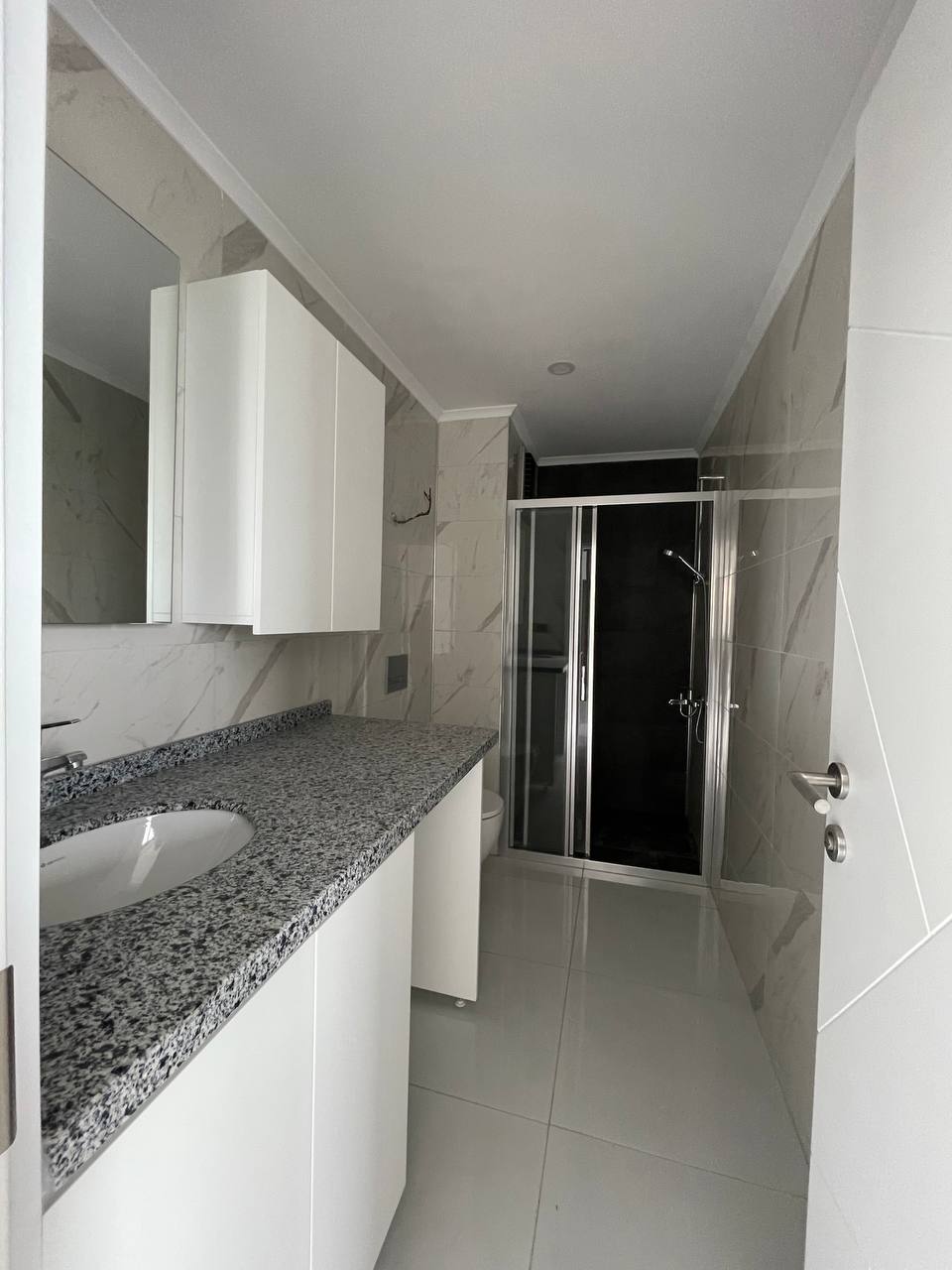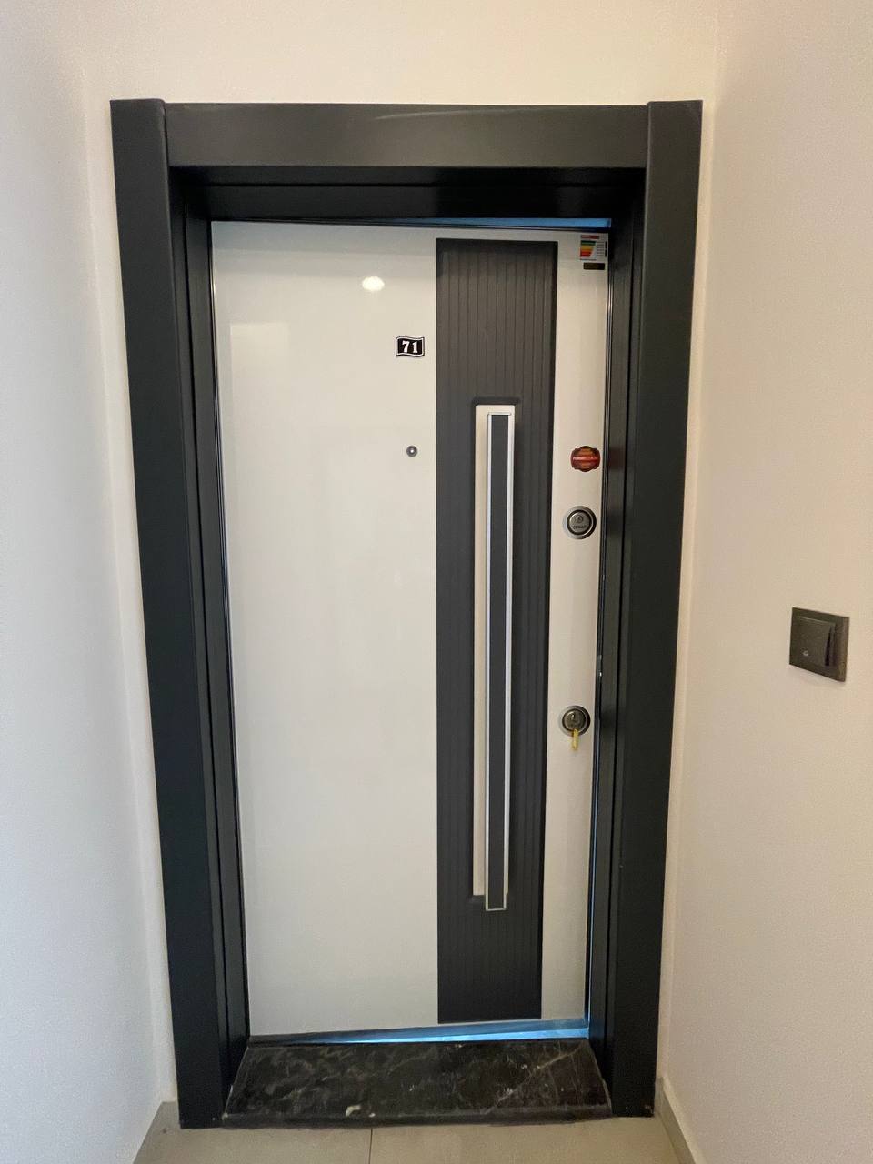 The apartments have: steel doors with a first-class security level, intercom with video system, suspended ceilings and spot hidden lighting, washable paint on the walls, porcelain tiles on the floor, equipped bathrooms, European-style kitchen units, double-glazed aluminum windows.
