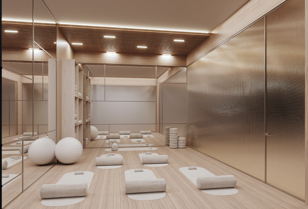 - Fitness center with areas for group and individual classes