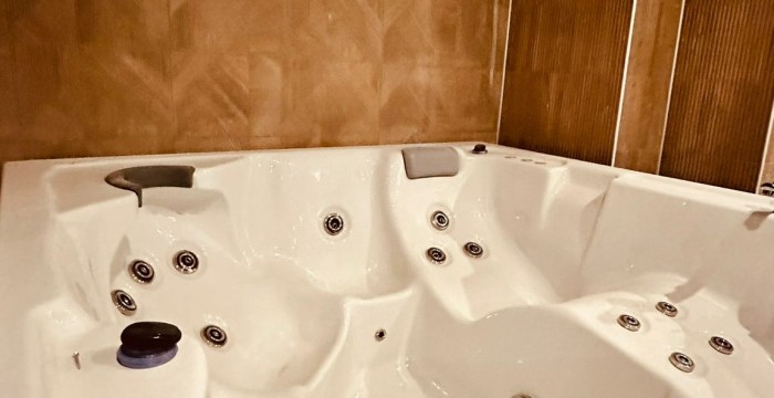 Fully fitted bathrooms with vanity units, wall-mounted toilets, and shower cabins