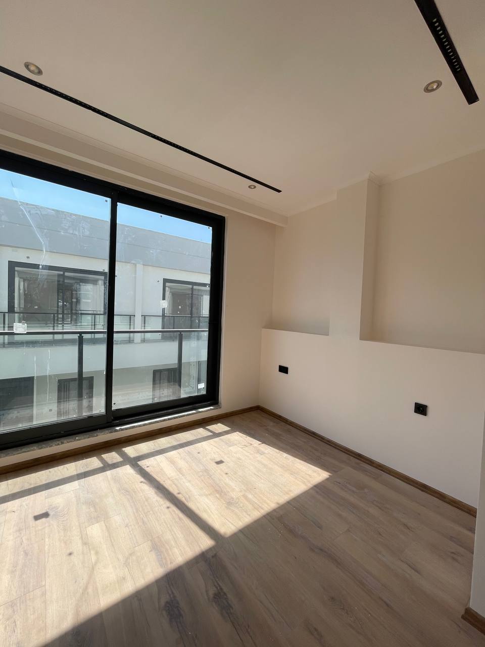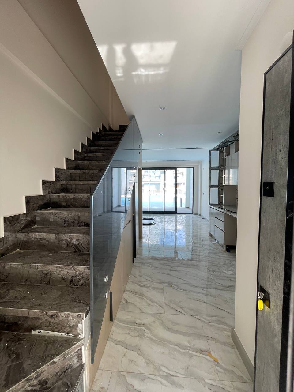 The townhouse is a 2+1 layout with a total area of 91 m². The first level features a living room with an open-plan kitchen, a guest bathroom. The second floor includes a private sleeping area with two cozy bedrooms, two en-suite bathrooms, and one balcony. The property is new, unfurnished, finished to a high standard, and ready for individual furnishing and interior design.