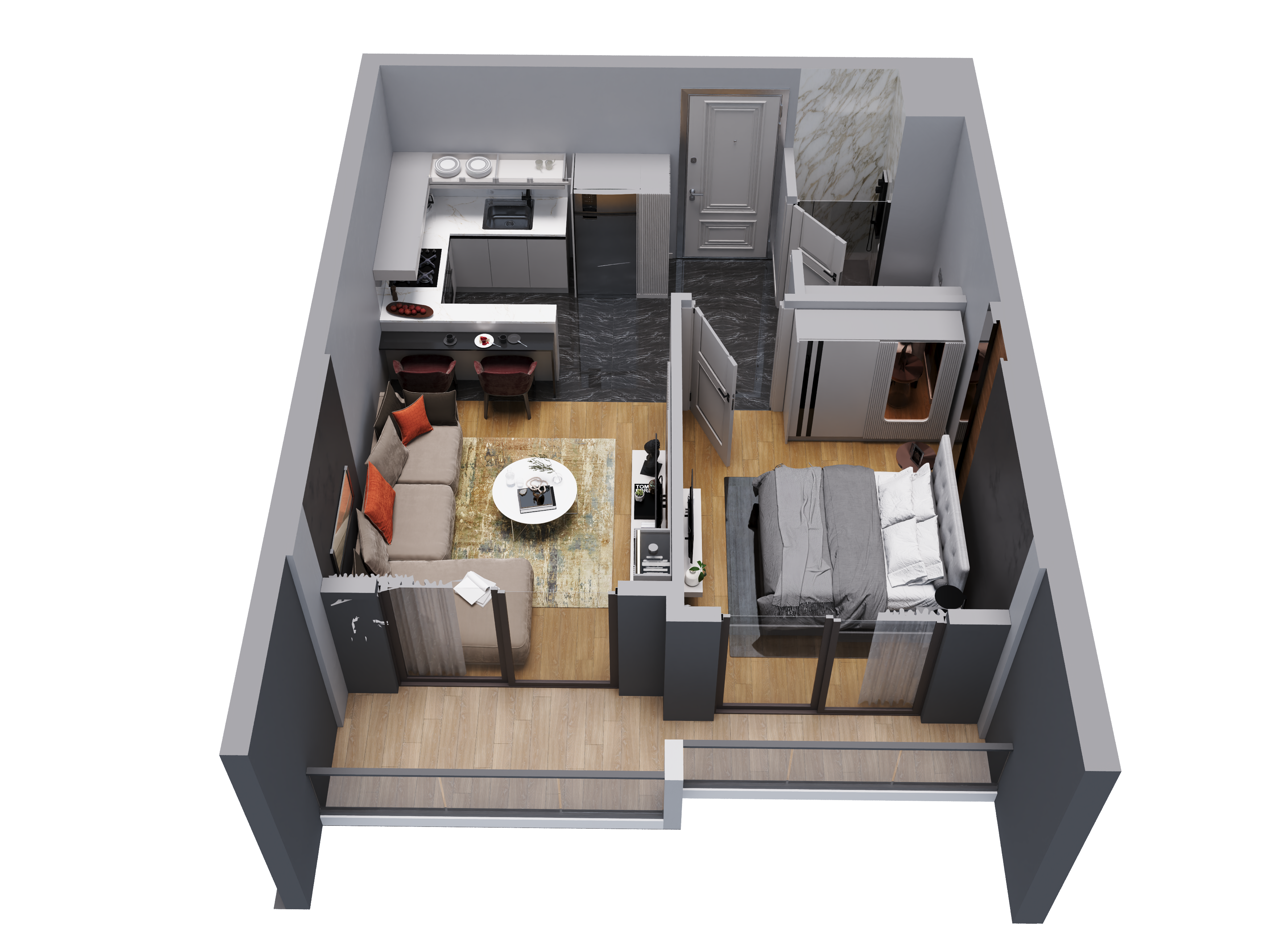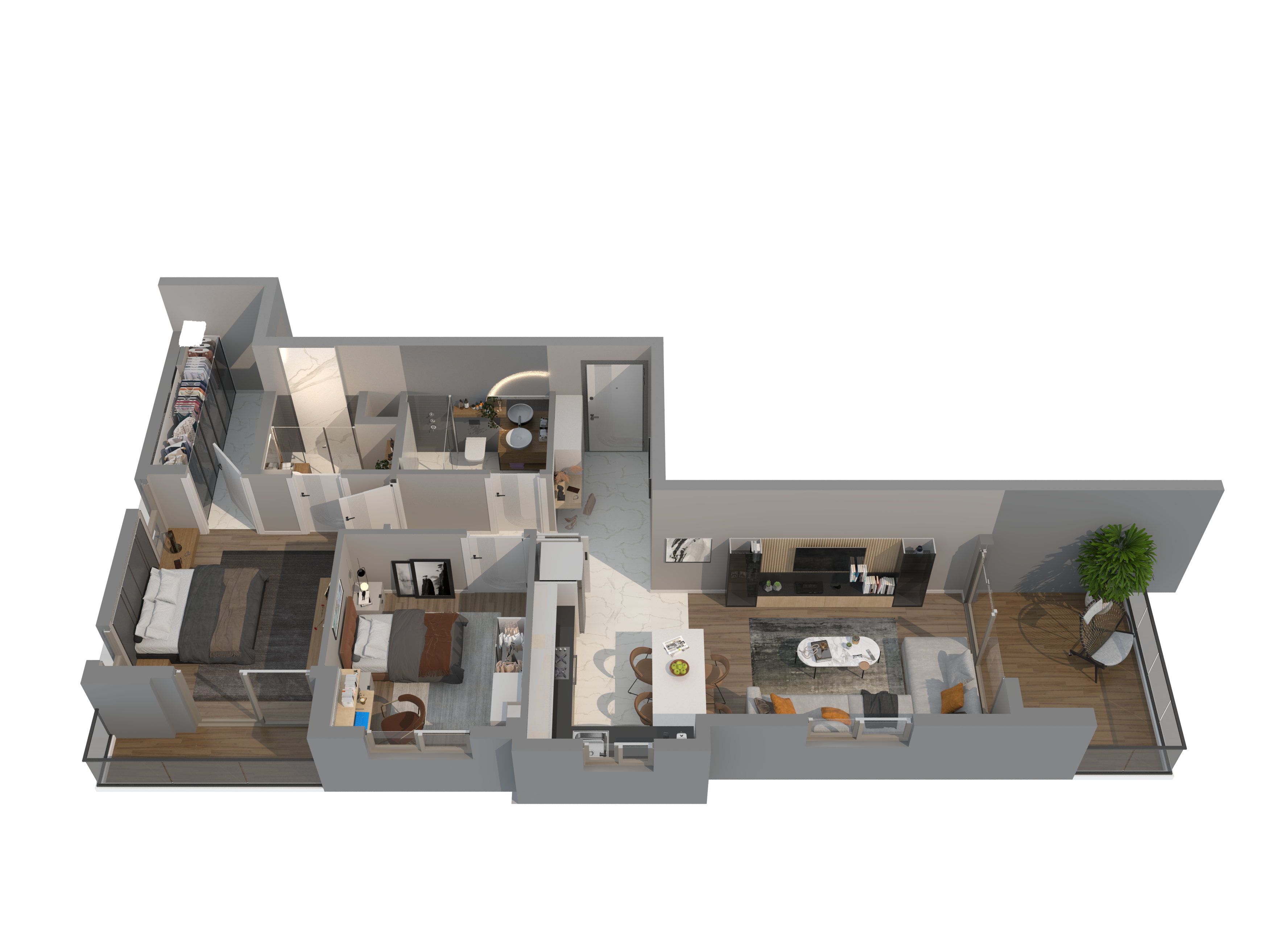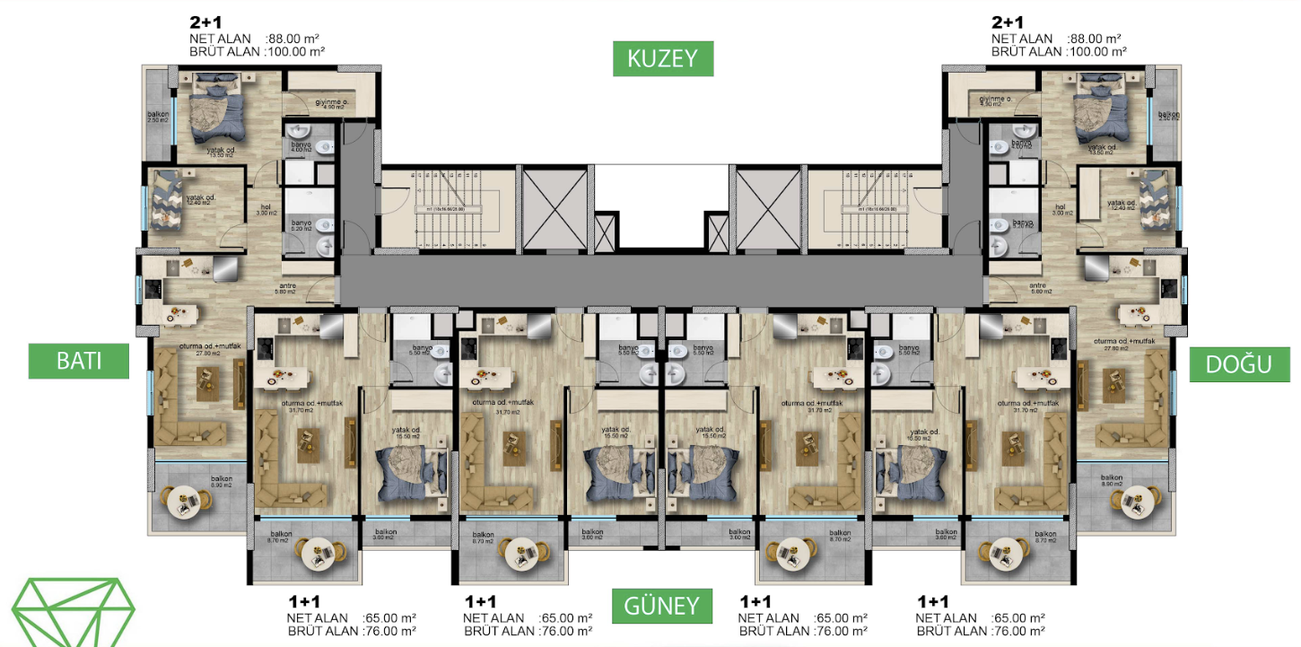 A modern residential community in Mersin focused on privacy and everyday infrastructure. Three buildings shape a gated green courtyard with a pool, lounge areas, and sports courts – a format where comfort is felt daily and the grounds work like a true club-style yard.