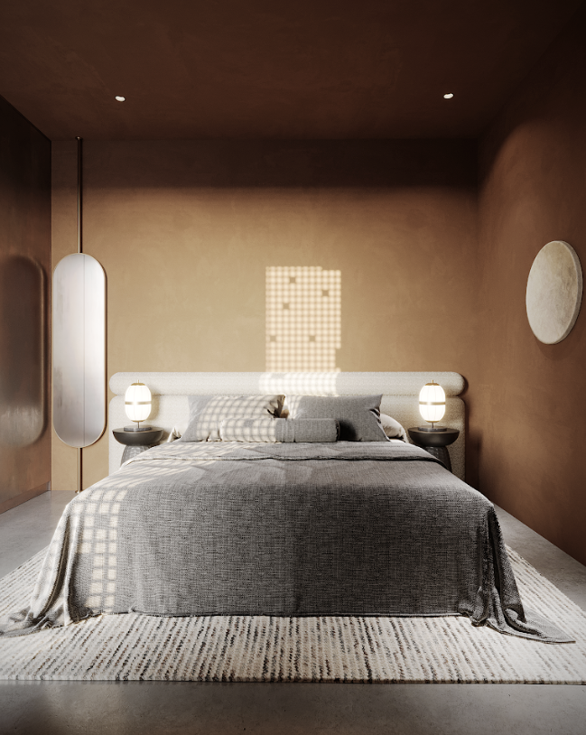 Desert Modernism style: light sandy tones, soft lines, minimalism.