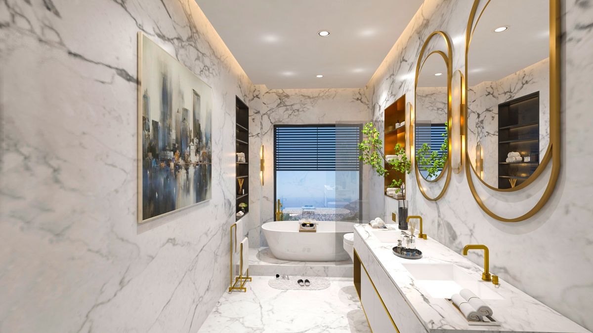 На каждой вилле есть холлы с видом на город и море, ботанические террасы, специальные гардеробные, просторная кухня и 6 современных ванных комнат с видом на город нового поколения.