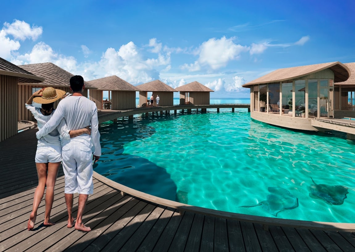 - Ценовой сегмент с наивысшим спросом и без конкуренции: Проект реализуется в диапазоне $200-350 за номер и $400-600 за виллу. Это наименее насыщенный сегмент мальдивского рынка, где спрос стабильно превышает предложение, а загрузка традиционно выше, чем в luxury и budget-форматах (STR Global, 2023).