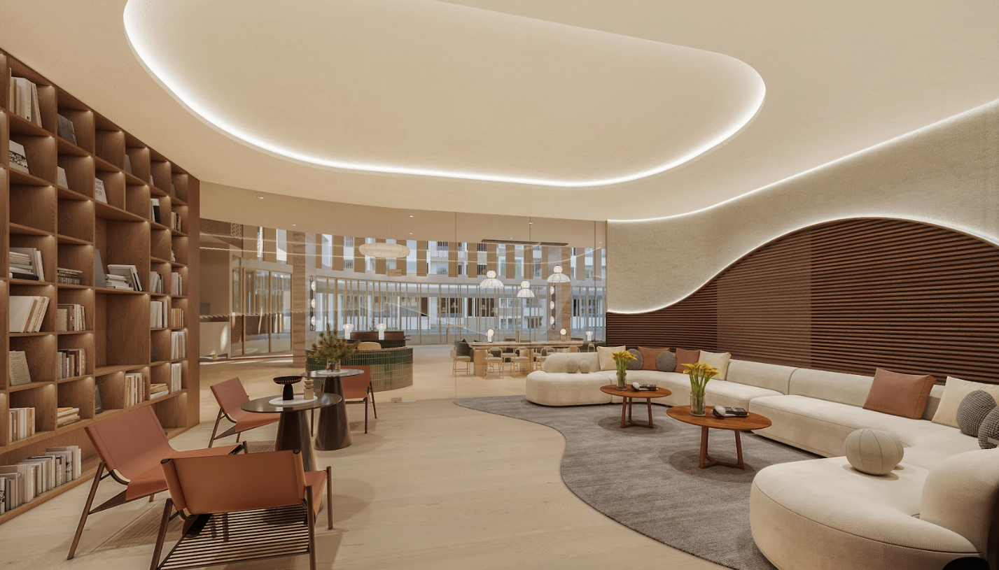 - Клубный дом с двумя тренажёрными залами, коворкингом, библиотекой, детской комнатой, зоной для мероприятий, сауной, йога-студией, скалодромом и эксплуатируемой крышей