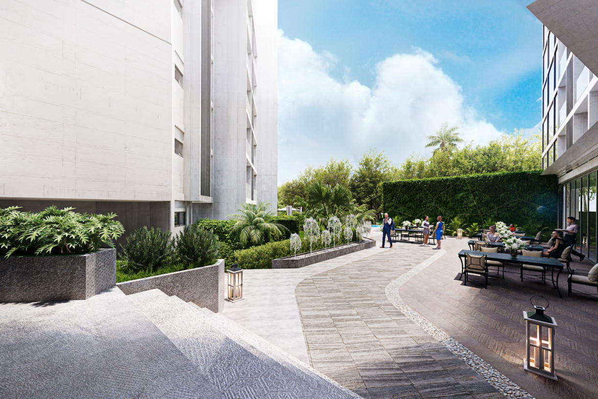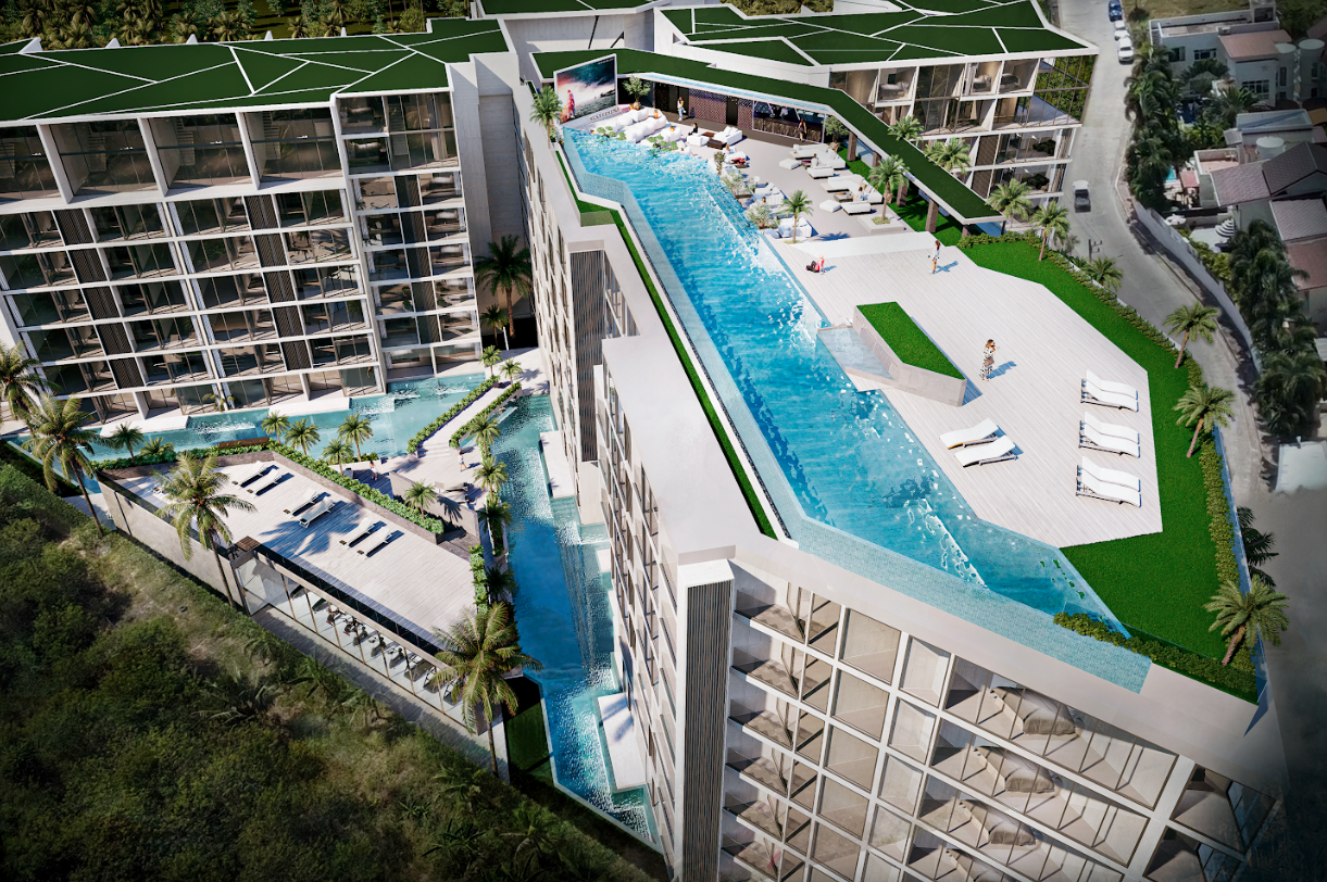 - Дизайн: Архитектура в виде буквы "X" обеспечивает оптимальное расположение корпусов. Благодаря большому количеству панорамных окон, 90% юнитов имеют вид на тропики.