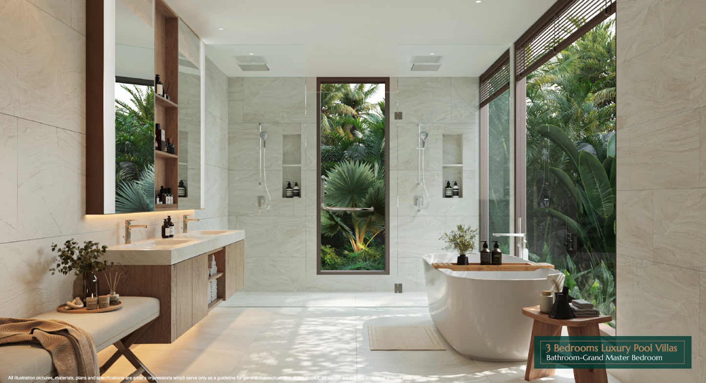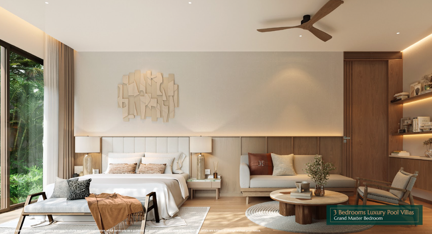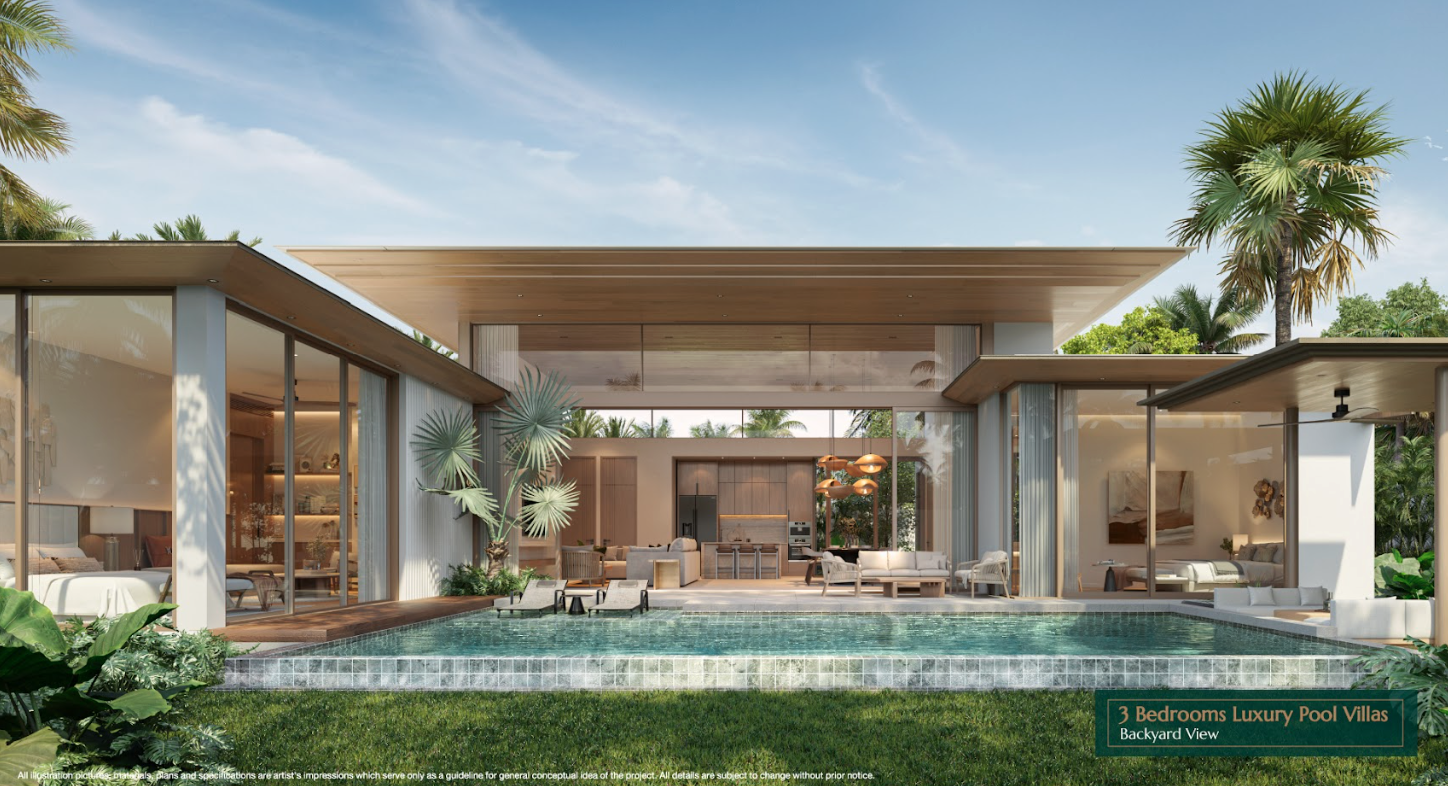 Виллы спроектированы как одноэтажные резиденции, предлагающие варианты с тремя спальнями (357 кв.м.) или четырьмя спальнями (511 кв.м.).