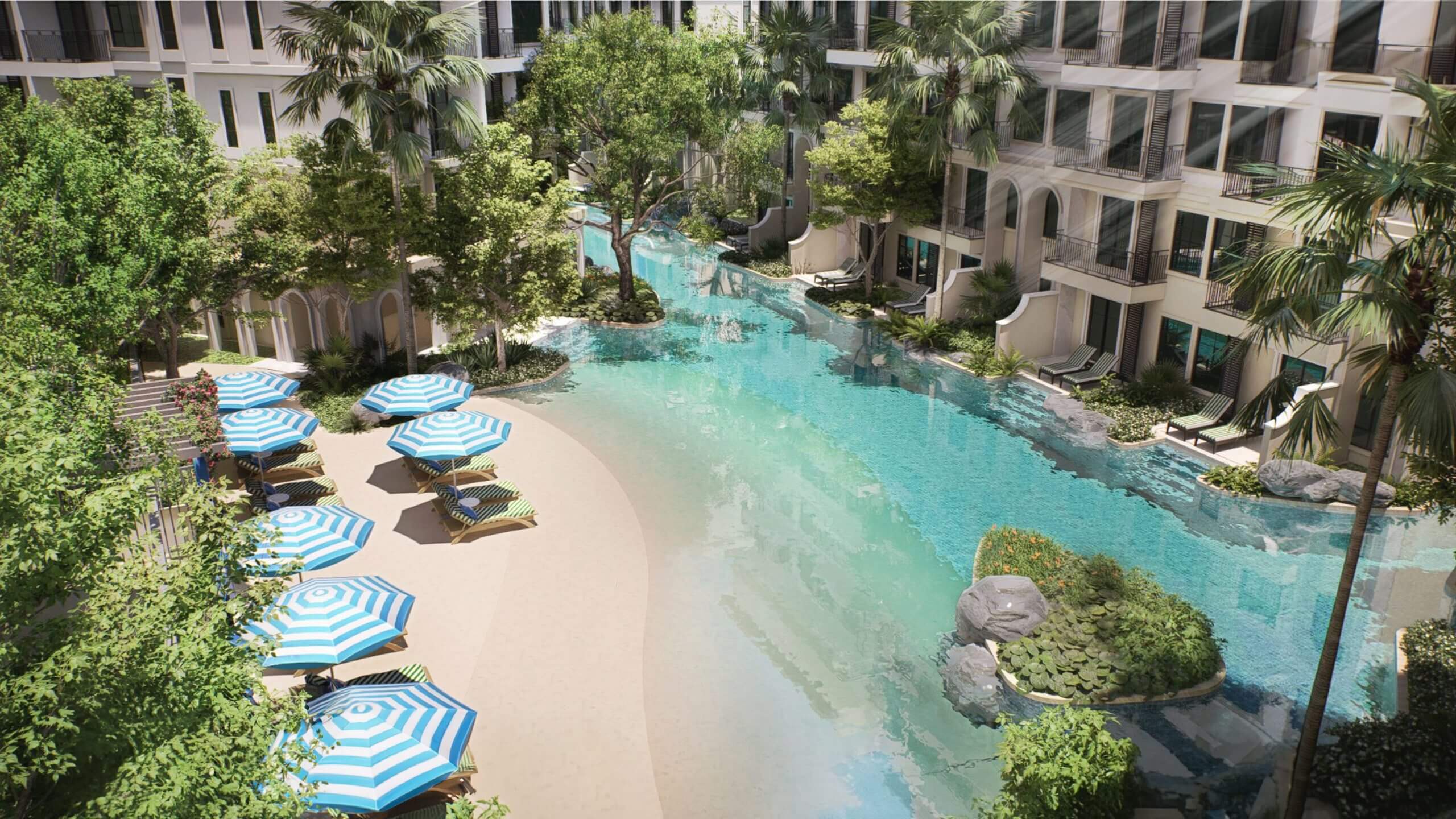 Про комплекс: сучасний житловий комплекс у середземноморському стилі, розташований у пішій доступності від популярного пляжу Ката. Комплекс складається з восьми семиповерхових будівель, двох паркувальних будівель і зони для домашніх тварин. Проєкт включає 760 квартир площею від 28 до 168 м² — студії, апартаменти з однією та двома спальнями, а також пентхауси. Інфраструктура комплексу включає басейни, фітнес-центр із зоною для йоги та боксерським рингом, сауну, онсен, міні-кінотеатр, коворкінг-зони та ігрову кімнату. Комплекс оточений пишною зеленню, звивистими доріжками та басейнами, створюючи атмосферу приморського курорту.