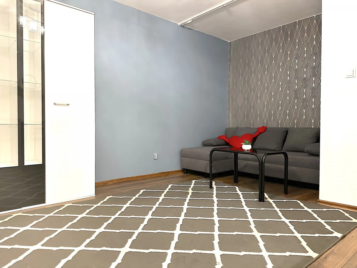 Під будинком є великий безкоштовний паркінг – місце для авто зазвичай є. Поруч багато сервісів: Żabka, перукарня, квітковий магазин, ресторан і піцерія. Lidl – лише 750 м. Також неподалік є ринок зі свіжими овочами та фруктами, а ТЦ RENOVA – приблизно 5 хв пішки.